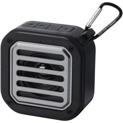 Speaker Bluetooth® IPX5 a ricarica solare in plastica riciclata RCS da 3 W con moschettone Solo | Articolo pubblicitario con logo