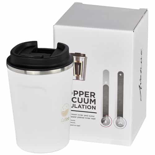 Struttura sottovuoto in acciaio inossidabile a doppia parete con isolamento in rame che permette alla bevanda di rimanere fredda per 24 ore o calda per almeno 8 ore. La costruzione impedisce anche la formazione di condensa all’esterno del bicchiere. Coperchio avvitabile a tenuta stagna. Verniciatura a polvere durevole e alla moda. Capacità di 360ml. Presentata in una confezione regalo Avenue. Perfetto come omaggio in fiere e conferenze.