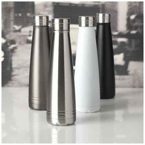 Bottiglia Duke, parete doppio strato 18/8 gradi in acciaio inox con isolamento sottovuoto. L’interno della parete è placata in rame che permette di mantenere fredde le bevande per 12 ore, quelle calde per 48 ore. Capacità 500ml. Confezione regalo Avenue. Ottimo per promozioni stagionali e campagne marketing.