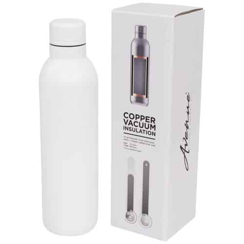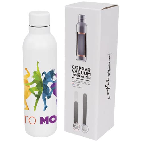 Borraccia sportiva termica Thor con isolamento sottovuoto in rame da 510 ml. Articolo versatile che valorizza il marchio in ogni occasione. Ideale per welcome kit, distribuzioni aziendali e regali corporate. Unisce funzionalità ed estetica offrendo al brand massima visibilità. Questo prodotto promozionale garantisce grande impatto e utilità.