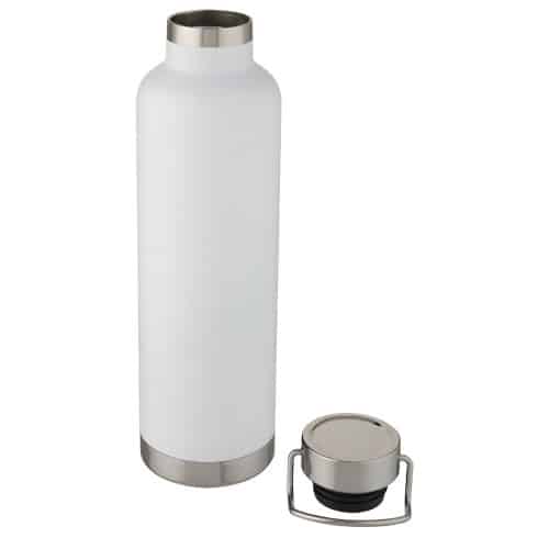 Ampia borraccia sportiva a doppia parete con struttura in acciaio inossidabile 18/8 e isolamento sottovuoto in rame che mantiene le bevande calde o fredde per diverse ore. La struttura impedisce anche la formazione di condensa sulla parte esterna della borraccia, mentre la finitura in polvere alla moda la rende estremamente resistente. Presenta un coperchio ermetico a vite e un anello resistente in acciaio inossidabile. Ampia apertura per riempirla, versare il contenuto e pulirla in modo semplice. Priva di BPA, testata e approvata ai sensi della normativa tedesca in materia di sicurezza alimentare (LFGB). Testata e approvata per il contenuto di ftalati secondo il regolamento REACH. Perfetta per essere riempita con cubetti di ghiaccio. La capacità è di 1 l. È consigliato lavarla a mano. Fornita in una confezione regalo in cartone riciclato. Un gadget che cattura l’attenzione in ogni contesto promozionale.
