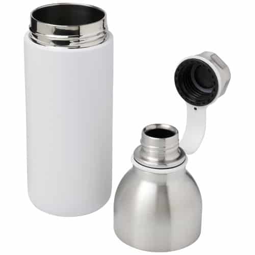 Struttura sottovuoto in acciaio inossidabile a doppia parete con isolamento in rame che permette alla bevanda di rimanere fredda per 48 ore o calda per almeno 12 ore. La costruzione impedisce anche la formazione di condensa all’esterno della borraccia. Dotata di un coperchio avvitabile in acciaio inossidabile con un comodo anello in silicone. Struttura a doppia apertura per una facile pulizia e riempimento. Capacità di 590ml. Presentata in una confezione regalo Avenue. Ideale per consolidare la presenza del tuo brand.