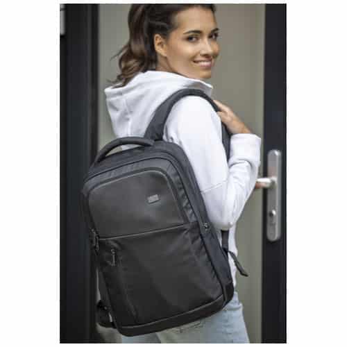 Un elegante zaino per portatile con molto spazio e funzionalità che lo rendono adatto al lavoro o al tempo libero. Scomparto rialzato e imbottito per portatili fino a 15,6″ e tasca per tablet fino a 12″. Tasca organizzativa frontale per un power bank, accessori ed oggetti essenziali di tutti i giorni. La piccola tasca frontale consente di accedere rapidamente a un telefono o a una carta d’imbarco. Doppie tasche laterali espandibili. Pannello con passante per bagagli. Ottimo per promozioni stagionali e campagne marketing.