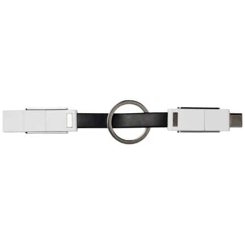 Un cavo 4-in-1 che copre tutte le esigenze di ricarica. Include un connettore USB type A, un Type-C e un connettore aggiuntivo 2-in-1, compatibile sia con dispositivi iOS che con Android. Utilizzabile sia per ricarica che per trasferimento dati. Fornito con anello portachiavi e dispone di magneti per un comodo trasporto. Ideale per consolidare la presenza del tuo brand.