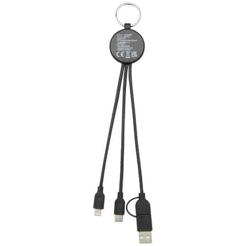 Cavo di ricarica 6 in 1 in plastica riciclata/bambù con portachiavi Tecta | Oggetto pubblicitario personalizzabile