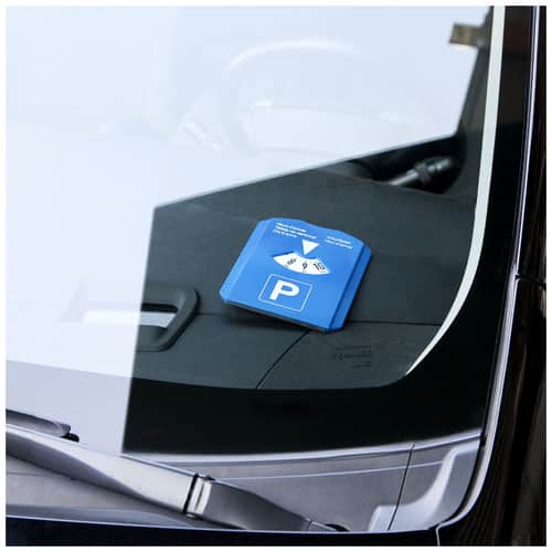 Disco orario con raschia ghiaccio, spazzola di gomma, moneta per carrello e misuratore di profondità del battistrada degli pneumatici. Il disco orario ha un’ampia area bianca sul retro per il logo. Il testo “Ora di arrivo” sulla copertura del disco è tradotto in olandese, inglese, francese, tedesco e italiano. Le normative possono variare a livello locale. Ottimo per promozioni stagionali e campagne marketing.