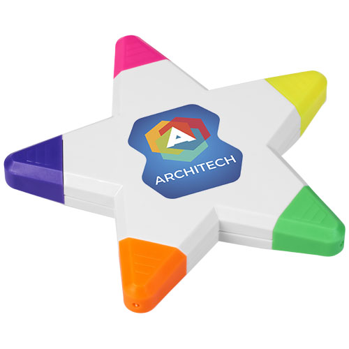 Stella con cinque vivaci evidenziatori colorati. Perfetto come omaggio in fiere e conferenze.