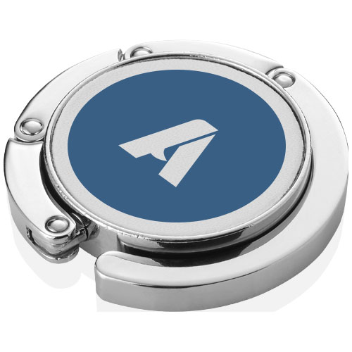 Gancio appendi borsa richiudibile per appendere la tua borsa e mantenerla pulita e al sicuro. Il gancio può essere attaccato al bordo di una superficie e può sostenere un peso massimo di 4,5 kg. Valorizza la tua azienda con un gadget distintivo.