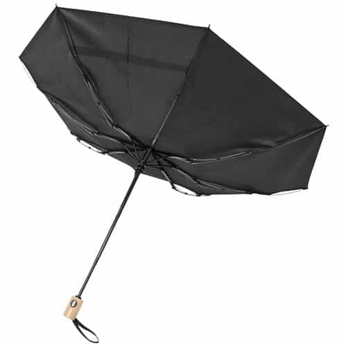 Ombrello con chiusura e apertura automatica con stoffa in poliestere pongee e PET riciclato. Robusto albero metallico e telaio di alta qualità con stecche in fibra di vetro per la massima flessibilità in condizioni di vento. Fornito con un sacchetto e può essere facilmente inserito in una borsa o uno zaino per un comodo trasporto. Insieme all’impugnatura in legno e alla stoffa in poliestere pongee e PET riciclato offre una scelta ecosostenibile. Disponibile in una grande varietà di colori contemporanei con un’ampia area di decorazione su ogni pannello. Pensato per lasciare un ricordo positivo del tuo brand.