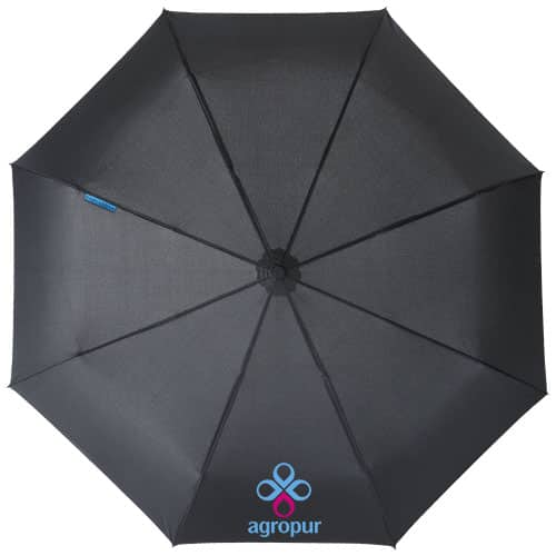 Ombrello 3 sezioni dal design esclusivo con apertura automatica. Asta nera in metallo, stecche in fibra di vetro e manico in plastica gommata. Fornito con custodia che richiama il colore della copertura. Si piega fino a 31 cm. Pensato per lasciare un ricordo positivo del tuo brand.