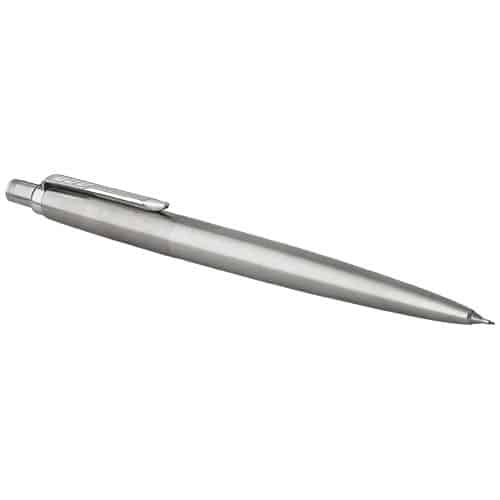 La penna Jotter, icona del marchio Parker, è la scelta d’elezione per chi scrive molto e ha bisogno di portare la penna sempre con sé. Confezione regalo Parker inclusa. Articolo fornito con mine di ricambio per la matita (punta 0,5 mm). Gomma per cancellare integrata sotto il tappo a pressione. Design esclusivo. Perfetto per kit di benvenuto aziendali.