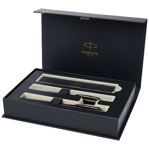 Parker set penna a sfera e penna roller acromatiche in confezione regalo IM. Un gadget promozionale resistente e personalizzabile con logo aziendale. Perfetto come omaggio per eventi, fiere e promozioni stagionali. Il design pratico lo rende utile nella vita quotidiana e sempre apprezzato.