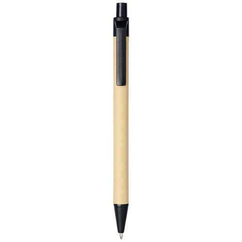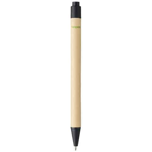 Penna a sfera Berk in cartone riciclato e plastica derivata dal mais. Un gadget promozionale resistente e personalizzabile con logo aziendale. Perfetto come omaggio per eventi, fiere e promozioni stagionali. Il design pratico lo rende utile nella vita quotidiana e sempre apprezzato.
