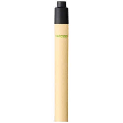 Penna a sfera ecologica con meccanismo a scatto, con serbatoio in materiale cartaceo biodegradabile e finiture in plastica derivata dal mais, disponibile in una varietà di colori. Il colore del cartone riciclato può variare. Perfetto per kit di benvenuto aziendali.