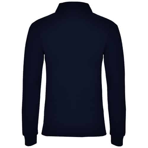 Polo a maniche lunghe con colletto e polsini a costine. Chiusura con 3 bottoni e polsini in elastan a costine 1×1.. Copri cuciture rinforzate sul colletto. Vestibilità aderente. Etichetta rimovibile. La modella è alta 168 cm ed indossa una taglia S. Perfetto come omaggio in fiere e conferenze.