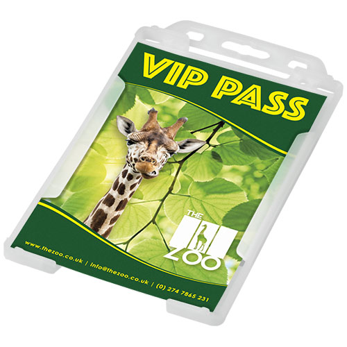 Porta badge in formato verticale prodotto in plastica riciclata. Ideale per mostre, luoghi di lavoro ed eventi di networking. Adatto per pass con dimensioni standard dei biglietti da visita e delle carte di credito. A causa della natura della plastica riciclata, le tonalità dei colori possono variare leggermente e possono essere presenti macchioline di colore. Prodotto nel Regno Unito. Pensato per lasciare un ricordo positivo del tuo brand.