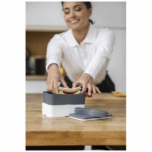 Goditi lo spazio in più con il portavivande a doppio strato MIYO! Con una o due basi da 700 ml, questo portavivande offre molto spazio per i panini, la frutta, l’insalata e molto altro ancora. Presenta una fascia realizzata in PET riciclato per mantenere il contenuto in posizione. Altre combinazioni di colori e accessori disponibili, come una forchetta-cucchiaio oppure uno scomparto interno. Contattaci per ulteriori informazioni. Adatto al forno a microonde, lavabile in lavastoviglie, privo di BPA e completamente riciclabile. Prodotto nel Regno Unito e confezionato in un sacchetto idoneo al compostaggio domestico. Personalizza completamente il tuo MIYO aggiungendo individualmente i nomi dei destinarari sul coperchio – contattaci per maggiori indormazioni. Un articolo sempre apprezzato da clienti e collaboratori.