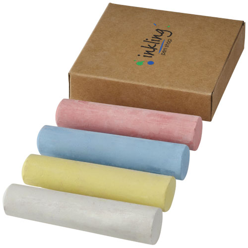 4 gessetti colorati in scatola di carta. Personalizzazione non disponibile sui gessetti. Ottimo per promozioni stagionali e campagne marketing.