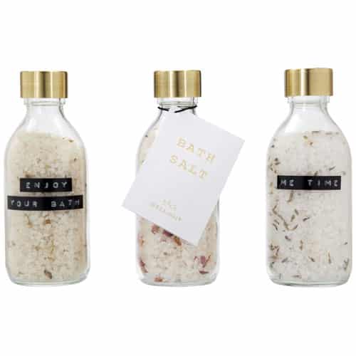 Set regalo “Just Relax” con 3x 200 ml di sali da bagno del Mar Morto in una bottiglia di vetro trasparente con tappo in acciaio color ottone. Ogni flacone ha un profumo diverso: Rosa, Lavanda e Camomilla. Non hai la vasca da bagno a casa? Il sale da bagno può essere utilizzato anche per rinfrescare e rilassare i piedi stanchi. Il regalo perfetto per ogni occasione a un prezzo accessibile. Prodotto nei Paesi Bassi. Un articolo sempre apprezzato da clienti e collaboratori.