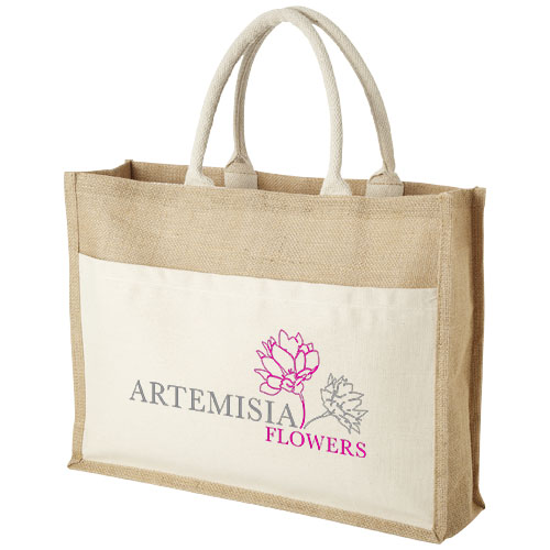 Shopper in juta Mumbay – 18L. Articolo versatile che valorizza il marchio in ogni occasione. Ideale per welcome kit, distribuzioni aziendali e regali corporate. Unisce funzionalità ed estetica offrendo al brand massima visibilità. Questo prodotto promozionale garantisce grande impatto e utilità.