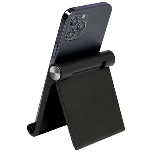 Supporto per telefono e tablet compatibile con tutti i principali telefoni e tablet con uno spessore inferiore a 12 mm, tra cui iPhone, iPad, Samsung Galaxy/Tab, Google Nexus, HTC, LG, Nokia Lumia e OnePlus. Il supporto è facilmente regolabile per una visione da più angolazioni. Ampia superficie di stampa sul pannello anteriore. Scelta pratica e conveniente per qualsiasi evento.