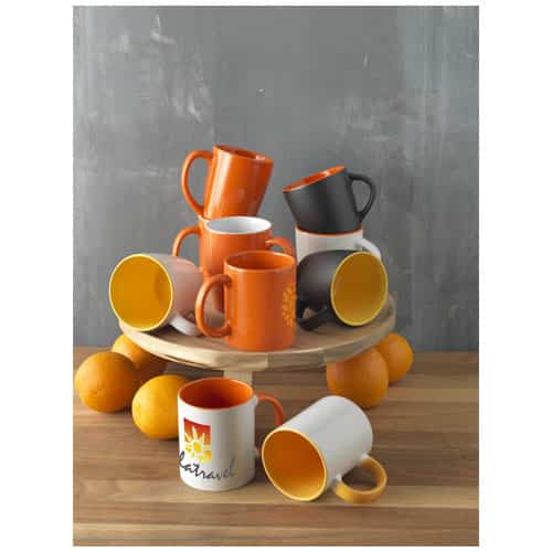 Tazza in ceramica Santos da 330 ml. Articolo versatile che valorizza il marchio in ogni occasione. Ideale per welcome kit, distribuzioni aziendali e regali corporate. Unisce funzionalità ed estetica offrendo al brand massima visibilità. Questo prodotto promozionale garantisce grande impatto e utilità.