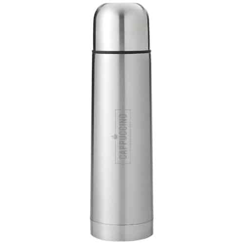 Thermos con coperchio tazza. Beccuccio apribile a pressione con una sola mano, che si chiude automaticamente avvitando il coperchio tazza. Capacità massima 750 ml. Pensato per lasciare un ricordo positivo del tuo brand.