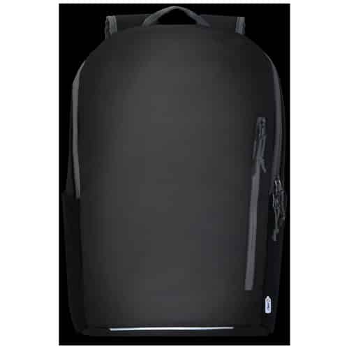 Lo zaino per portatile impermeabile è prodotto con materiali riciclati certificati GRS, comprese le cerniere. Presenta una tasca imbottita per portatile da 15″ con apertura laterale per un accesso rapido, numerose tasche in rete, una tasca anteriore con cerniera e bordino catarifrangente per una maggiore visibilità. Lo schienale sagomato e imbottito e la cinghia pettorale regolabile lo rendono comodo da trasportare anche quando è pieno. I materiali riciclati certificati GRS includono il tessuto principale, la fodera, la cinghia e le cerniere. Capacità: 21 litri. Senza PVC. Valorizza la tua azienda con un gadget distintivo.